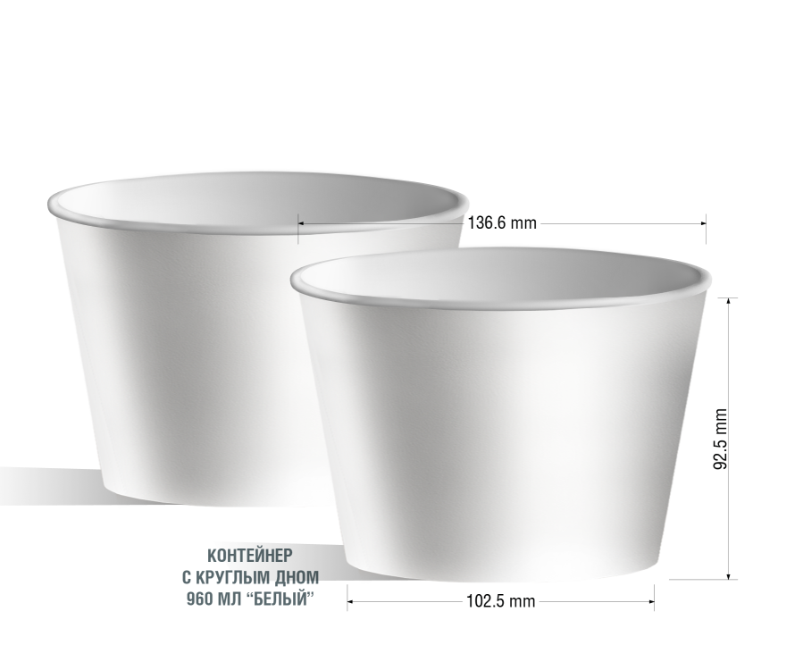 Белые контейнеры с круглым дном Белые контейнеры с круглым дном - универсальная экологически чистая посуда.Белые контейнеры изготавливают из материала имеющего природное происхождение (целлюлоза) без применения краски и поэтому они экологически чистые. Утилизация белых бумажных контейнеров не требует больших затрат и не вредит окружающей среде, что выгодно отличает их от пластиковых собратьев.