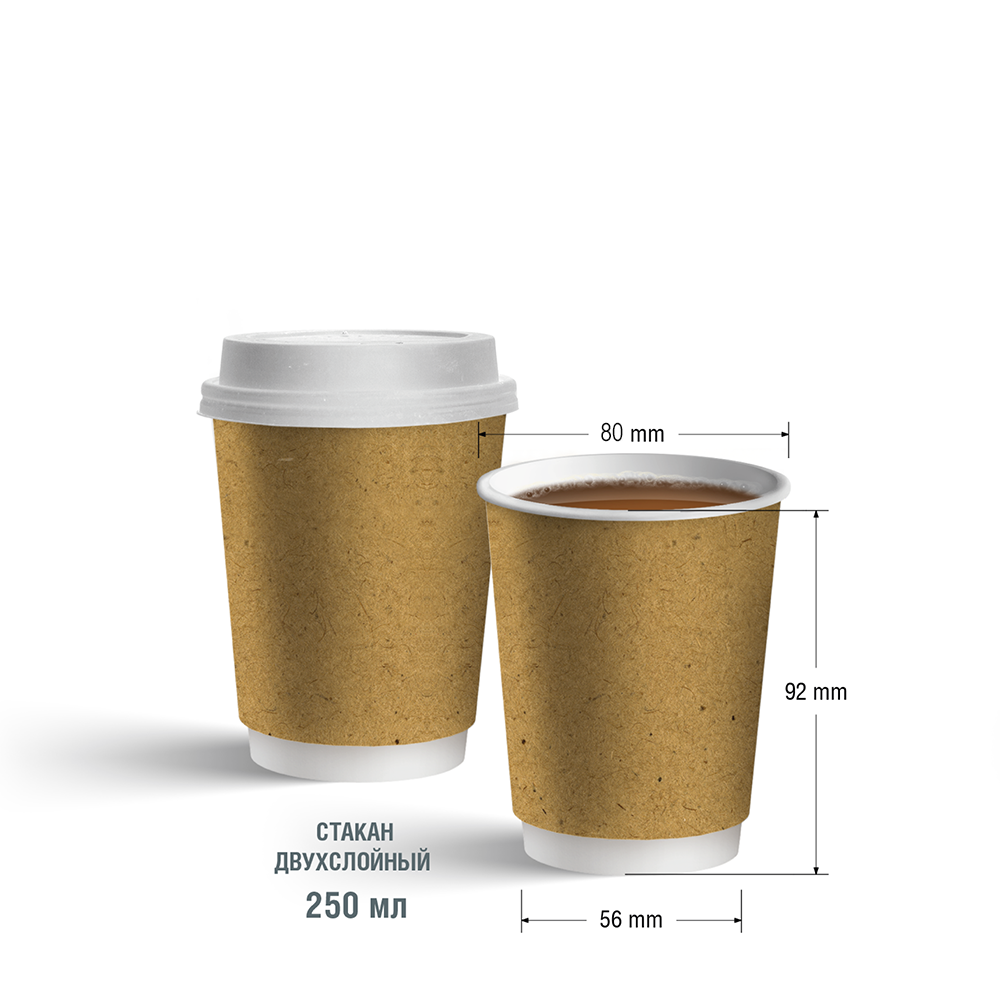 Бумажный стакан двухслойный Крафт 250 млХарактеристики товара